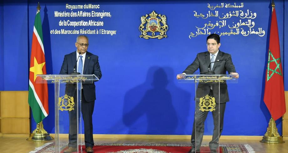 وقال رئيس دبلوماسية جمهورية سورينام، خلال لقاء صحافي عقب محادثاته مع وزير الشؤون الخارجية والتعاون الإفريقي والمغاربة المقيمين بالخارج، ناصر بوريطة، إنه بحث مع نظيره المغربي فرص تعزيز العلاقات بين أوساط الأعمال من كلا البلدين بهدف تعزيز المبادلات الثنائية في إطار التعاون جنوب-جنوب.