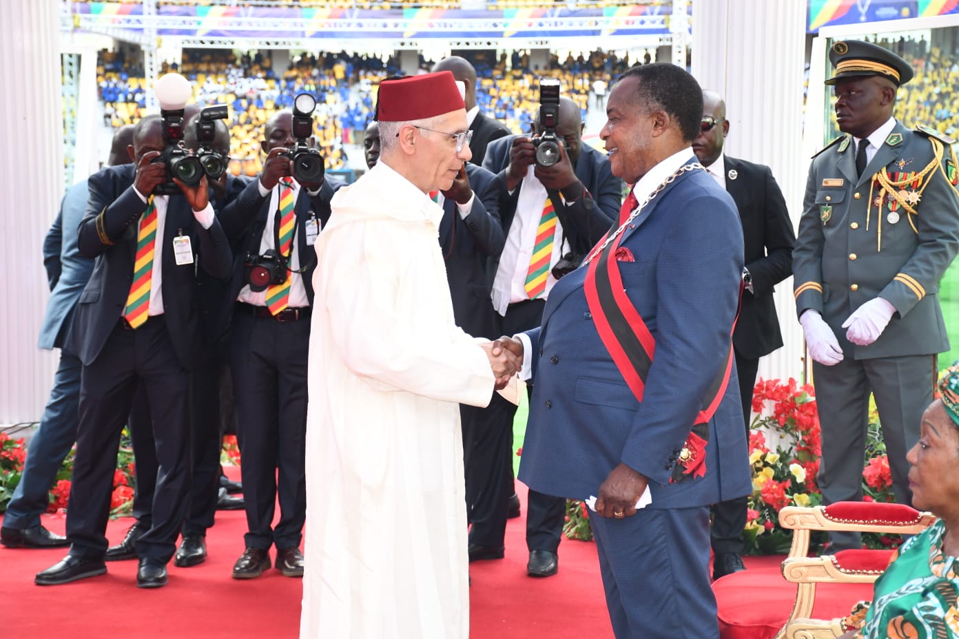 مثل رئيس مجلس النواب، السيد راشيد الطالبي العلمي، صاحب الجلالة الملك محمد السادس اليوم الخميس في برازافيل في حفل تنصيب رئيس جمهورية الكونغو، السيد دينيس ساسو نغيسو.