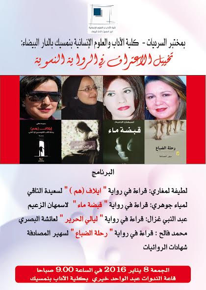 نظم مختبر السرديات بتنسيق مع ماستر السرد الأدبي الحديث والأشكال الثقافية ندوة بعنوان ” تخييل الاعتراف في الرواية النسوية “، وذلك صبيحة يوم الجمعة ثامن يناير 2016 بقاعة الندوات عبد الواحد خيري، بكلية الآداب والعلوم الإنسانية بنمسيك الدار البيضاء.