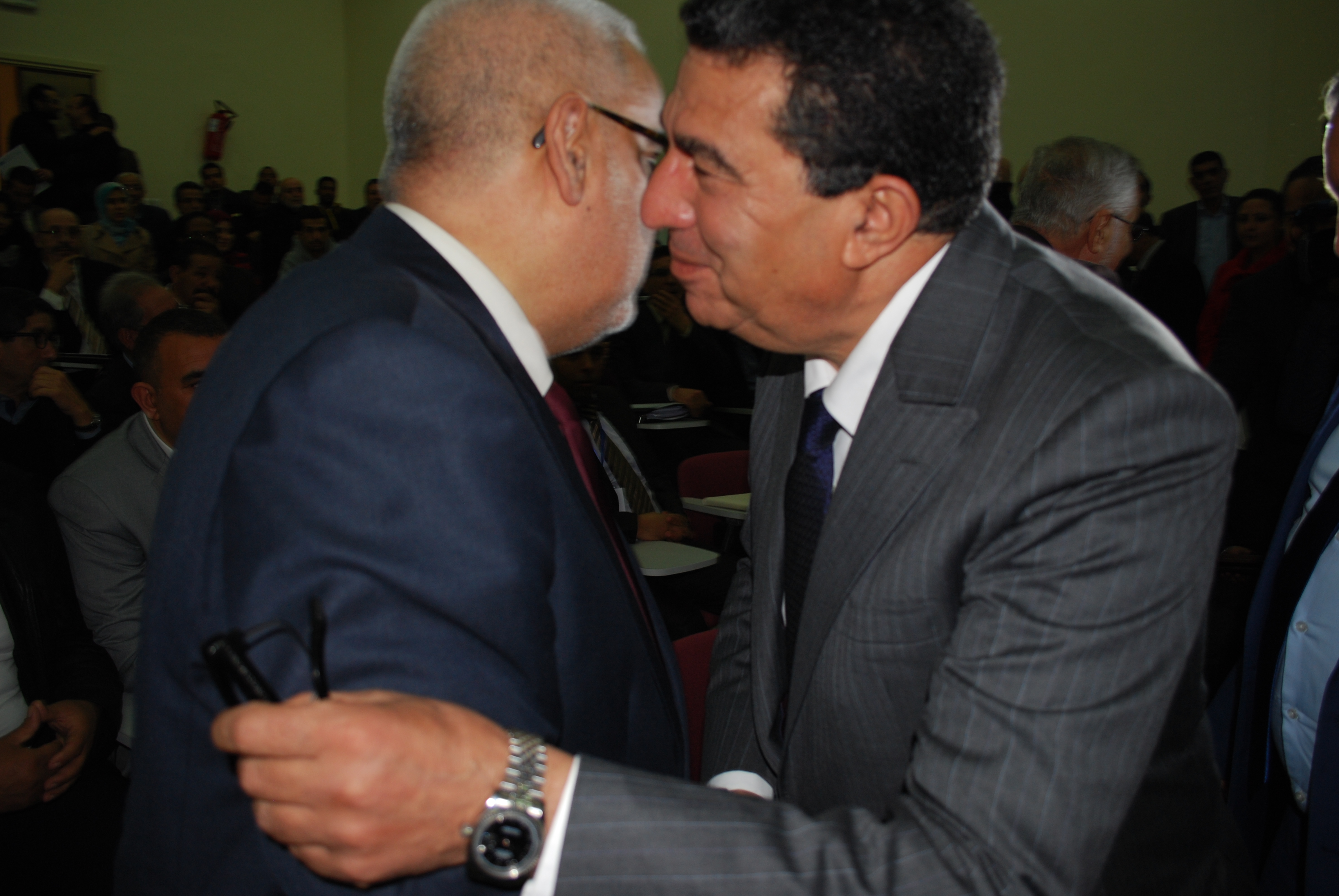 ولوحظ مبيدع يقوم بالسلام على رئيس الحكومة بطريقة اثارت الكثير من السخرية، كما توضح الصورة” كاين غير بوسان” وهو ما رد عليه احد الحاضرين ب” تملق الوزير مبيدع لرئيسه بن كيران…”
