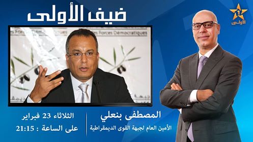 قالت مصادر أن محمد التيجيني منشط برنامج “ضيف الأولى” بالقناة الأولى،سيستضيف يوم الثلاثاء 23 فبراير الجاري، المصطفى بنعلي نائب الأمين العام لحزب جبهة القوى الديمقراطية، بصفته “أمينا عام” في حين أن الحزب لم يعقد بعد مؤتمره لإنتخاب أمين عام جديد يخلف الراحل التهامي الخياري.