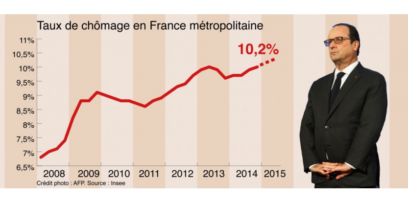 واحصى المعهد في نهاية 2015 في المجموع 2,86 مليون عاطل عن العمل على الاراضي الفرنسية باستثناء مناطق ما وراء البحار (-1,6 بالمئة خلال فصل واحد و-1,8 بالمئة على مدى عام).