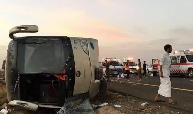 أعلنت المديرية العامة للشؤون الصحية بمنطقة المدينة المنورة أن أربعة معتمرين توفوا وأصيب 45 آخرون لدى حادث تعرضت له حافلة تقلهم، الجمعة.