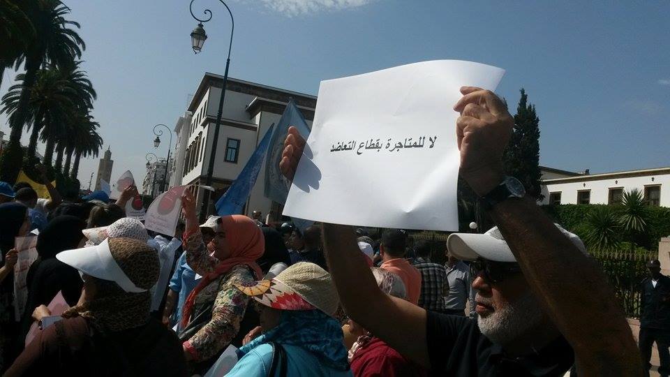 ورفع المحتجون شعارات منددة بالحكومة وبالبرلمان، بخصوص تمرير مشروع مدونة التعاضد قي صيغته الحالية، والذي يضرب حسب النقابيين حقوق ومكتسبات والمستخدمين والمنخرطين.