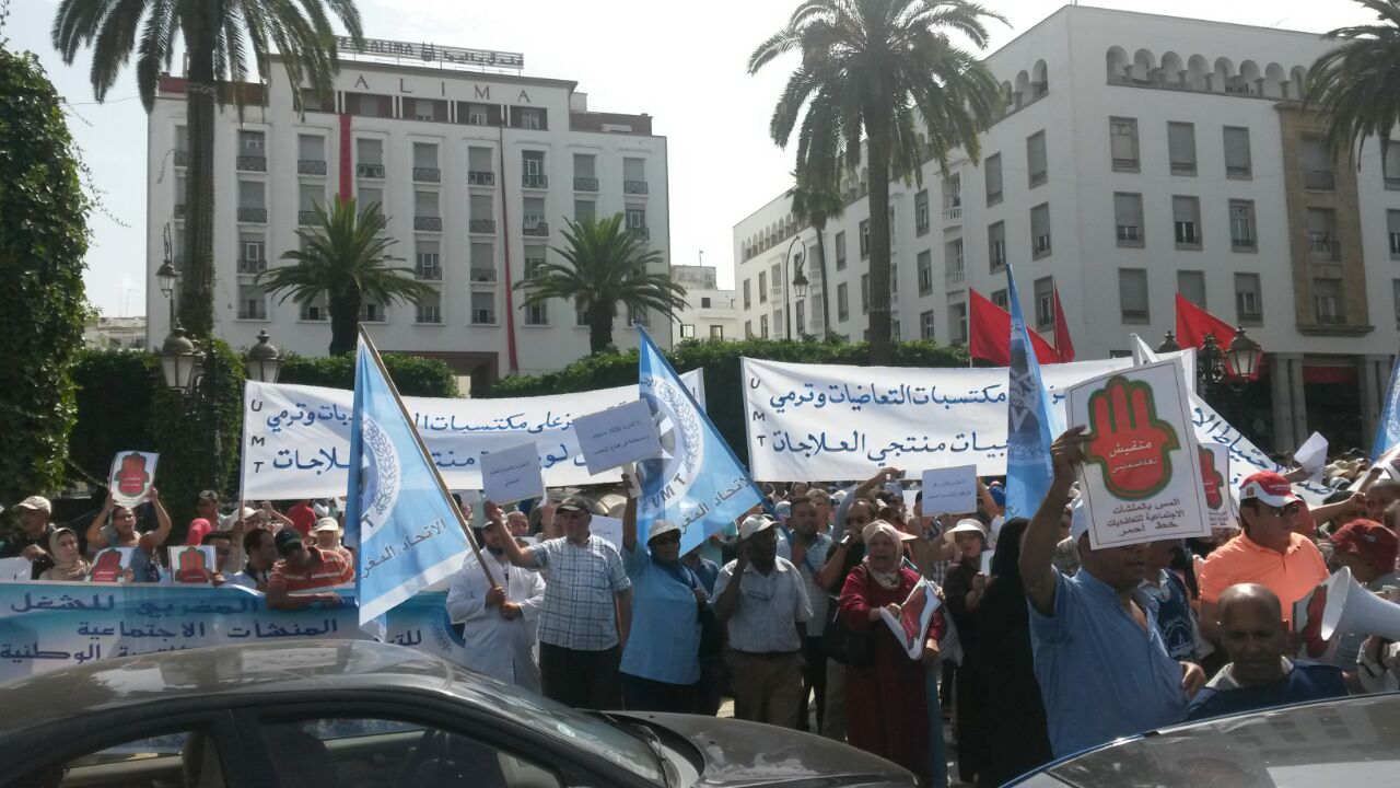 ورفعت شعارات تطالب بالتراجع الفوري عن مشروع مدونة التعاضد، وعدم تشريد 1500مستخدم ومسنخدمة في قطاع التعاضد، وعدم المس بالمنشآت الاجتماعية بالتعاضديات، ولا لضرب حقوق ومكتسبات القطاع التعاضدي الاحتياط الاجتماعي للمنخرطين والمنخرطات