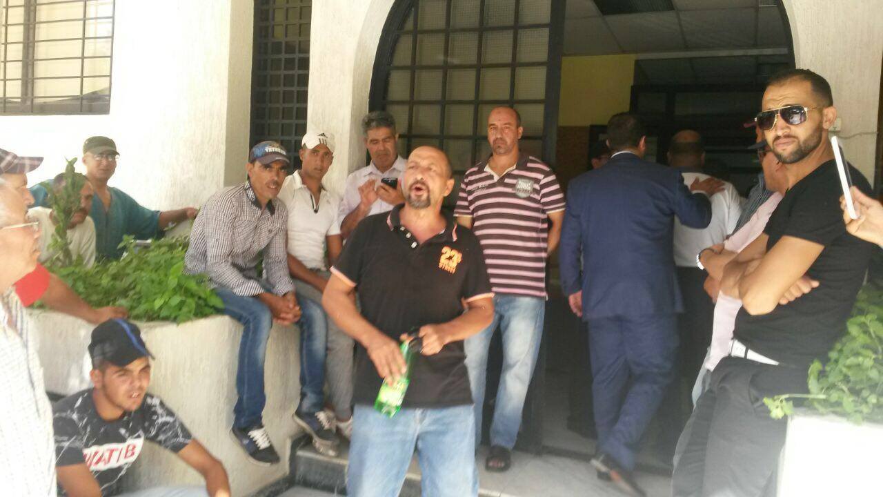 ووقف المحتجون بباب الحزب في محاولة لعدم دخول رؤساء جماعات ومستشارين جماعيين من اقليم خريبكة جاؤوا الى الرباط لدعم الوزير حداد.