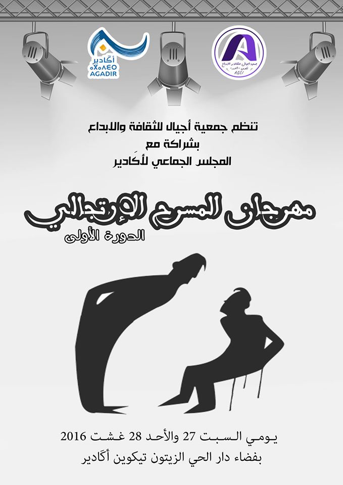 تنظم جمعية أجيال للثقافة والإبداع بشراكة مع الجلس البلدي لأكادير، فعاليات الدورة الأولى لمهرجان المسرح الإرتجالي، وذلك 27 و 28غشت 2016، بمدينة تيكوين أكادير.
