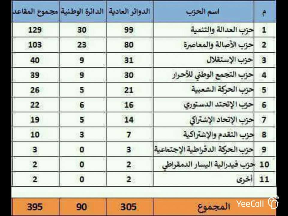 بعد اعلان النتائج المؤقة للانتخابات التشريعية، تتوقع مصادر ان تحصل الاحزاب على على مقاعد في لائحة الوطنية للشباب والنساء