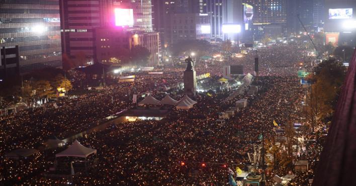وهذه التظاهرات التي تعد الاكبر في كوريا الجنوبية منذ الثمانينات، شارك فيها الاسبوع الماضي مليون شخص في كل انحاء البلاد، كما افاد المنظمون، في حين تحدثت الشرطة عن ارقام اقل بعشر مرات.