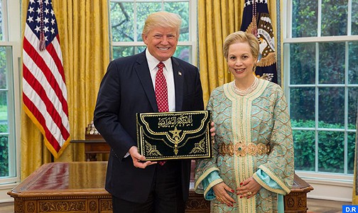 شكل الاستقبال الذي خص به الرئيس الأمريكي، دونالد ترامب، يوم الاثنين بالبيت الأبيض، للا جمالة، التي قدمت له أوراق اعتمادها كسفيرة لصاحب الجلالة الملك محمد السادس بالولايات المتحدة الأمريكية، مناسبة لإبراز علاقات الصداقة العريقة والممتازة التي تجمع بين البلدين، اللذين تواجدا دوما على الجانب ذاته من التاريخ، كما عملا على توحيد جهودهما لصون مثل الحرية والتسامح والسعي المشروع نحو مزيد من الرفاهية.