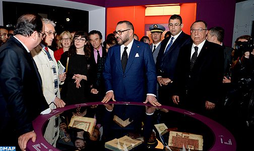 الملك والرئيس الفرنسي يقومان بزيارة معرض “كنوز الاسلام بافريقيا ،من تمبوكتو الى زنجبار” المقام بمعهد العالم العربي