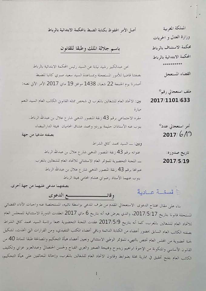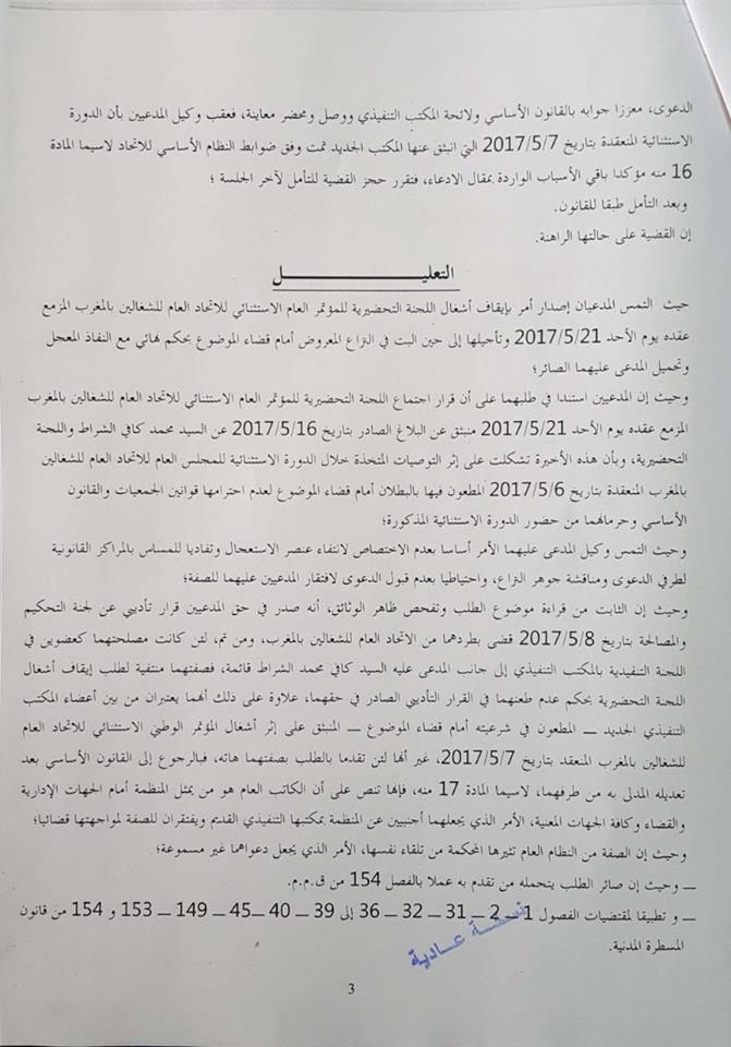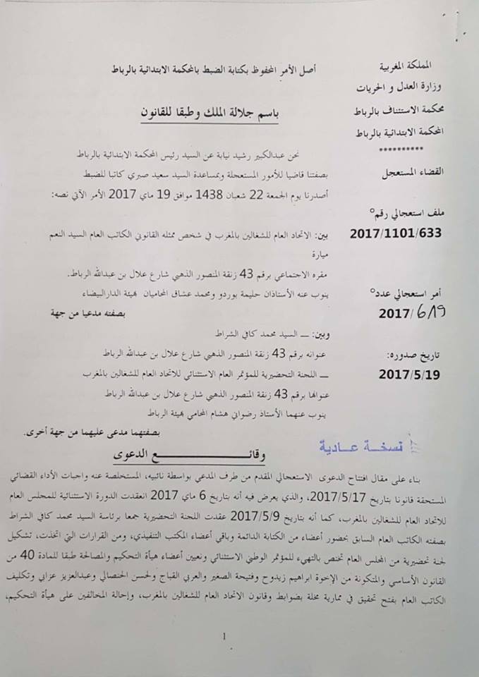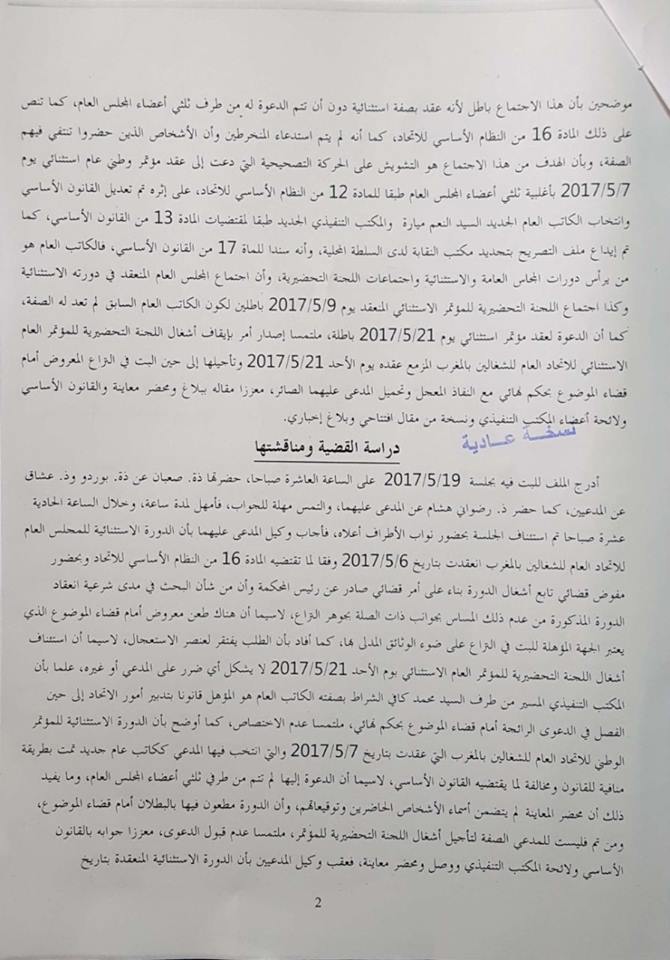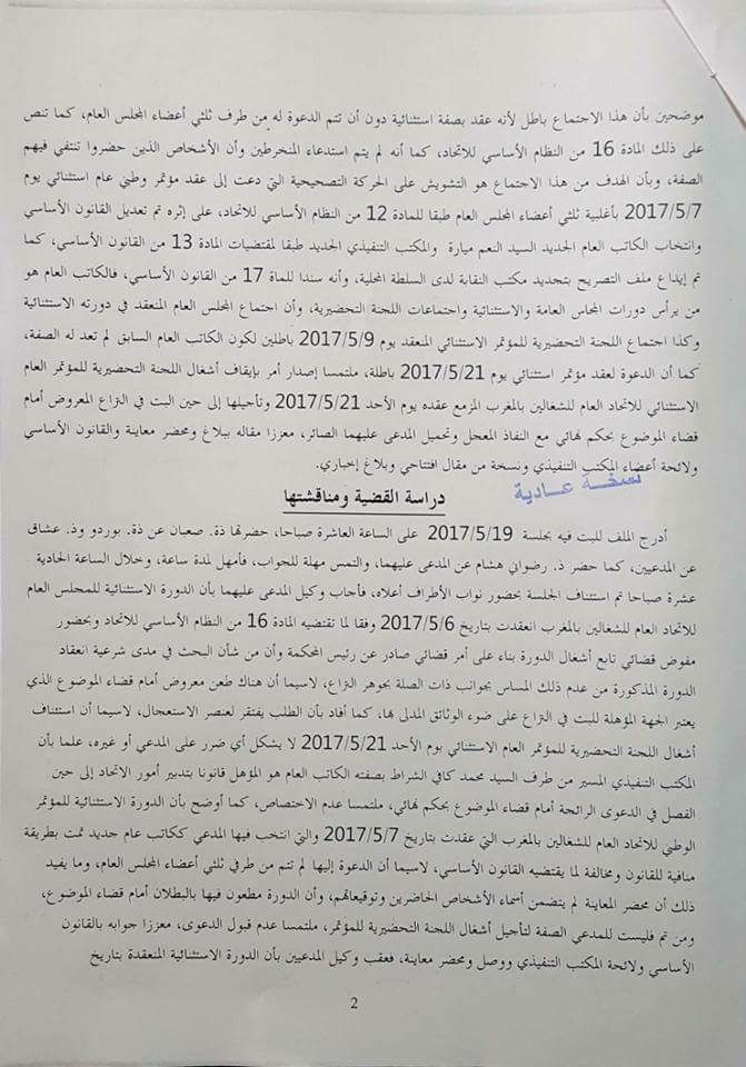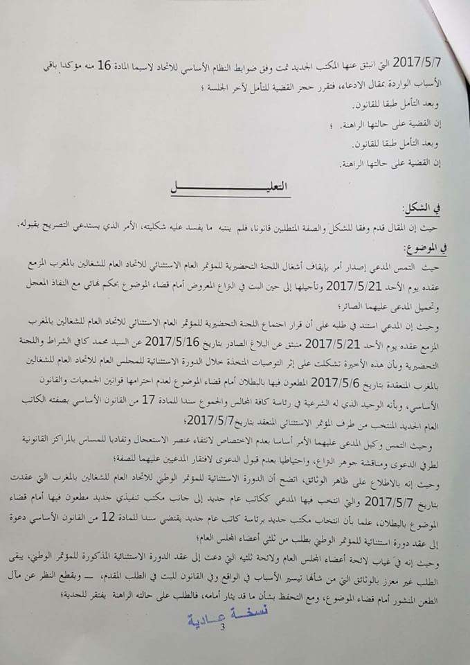 أين الحقيقة؟ هاهو الحكم القضائي بخصوص جدل مؤتمر نقابة الاتحاد العام للشغالين ورد النقابة ومديرية الأمن